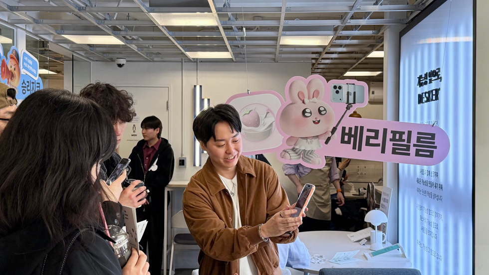 모스픽 옆 로비 공간에는 60만 팔로워 인스타 셀럽 베리의 뽀용한 감성의 카메라 필터 앱이 보여요. 터치 한 번으로 평범한 일상 사진이 영화의 한 장면처럼 변하는 마법을 직접 경험해 볼 수 있었답니다. 여심을 저격하는 베리만의 감성으로 특히 요즘처럼 벚꽃이 피어나기 시작한 때엔 더욱 핫한 앱이기도 해요.