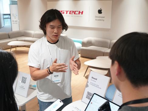 이뿐만 아니라 올해는 특별히 Apple의 실내지도를 활용해 4기 러너들이 직접 만든 쇼케이스 앱 Show X에서 모든 앱 부스의 위치는 물론 간단한 앱 정보와 함께 아카데미 공간의 편의시설을 나의 실시간 위치 기반으로 확인해볼 수 있었는데요. 매년 쇼케이스에 오셨던 분들이 너무 신기하다며 열띤 호응을 얻었다는 후문이 있었어요.